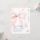 Bow theme baby shower invitation with an elegant pink bow design and a modern minimal design