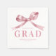 Add a stylish finishing touch to your celebration with these elegant personalized graduation party napkins. Featuring a cute pink watercolor bow, the design showcases the class year, the word “GRAD”, the graduate’s name, and the school or college they attended for a polished and celebratory look.