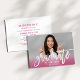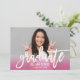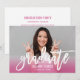 Celebrate your grad with a modern graduation party invitation featuring a full-bleed photo, bold white brush-script “graduate,” and a trendy pink colour-block fade. Clean, minimal name and class year personalisation keeps the focus on the photo. The back includes a coordinating white layout with matching pink headline text for party details. Personalise all wording.