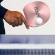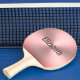 Grey display text is in the centre of this pink ping pong paddle. You edit the text to show the desired name. The brushed metal design is artwork.