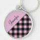 Modern Pink Buffalo Plaid Check Pattern Name Keychain