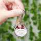 Modern Pink Burgundy Floral Bridesmaid Metal Keych Key Ring