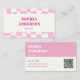 Make a lasting impression with this modern pink chequered business card design. Featuring bold typography, soft pastel accents, and a functional QR code, this card combines style and practicality. Perfect for entrepreneurs, creatives, and professionals who want a fresh, contemporary look for their networking tools. Personalise with your name, profession, contact details, and website to create a business card that reflects your brand.