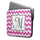 Modern Pink Glitter Chevron Zig Zag Stripe Fabric Print Pattern Monogram Initial 15" Laptop Case Bag Personalized