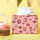 Celebrate the Chinese Lunar New Year with our Modern Chinese New Year Lucky icons gift wrap featuring modern pattern with illustrations of gold coins, blossoms, lion dancer masks, fans, fortune cookies, firecrackers, ying yang symbols, red envelopes and red lanterns on a pink background.