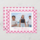 Step into the holiday spirit with our trendy Pink Gingham Photo Holiday Postcard. This unique design allows you to extend your warmest holiday greetings with a fun, modern twist. The postcard features a delightful pink and white gingham pattern that perfectly complements your favourite vacation family photo and "Merry Christmas" with a modern script calligraphy.
