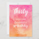 Modern pink coral watercolor ombre 30th Birthday Invitation