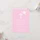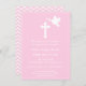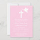 A modern, elegant, clean and minimalist Christening or Baptism invitation in pastel pink and white. Design has the holy cross in the centre and a dove flying towards the cross with a branch of leaves in its peak. On the reverse page is a pastel pink and white chevron zigzag pattern. Personalise easily with event details for baptism of baby girl.