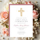 Modern Pink Cross Religious Girl First Communion Invitation