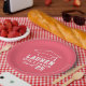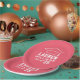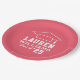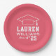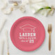 Custom round graduation paper plates features a pretty petal pink and white design (can be modified via "Customise It!") with a graduation cap and custom text for the grad's name and class year.