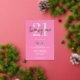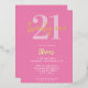 A simple modern 21st birthday invitation featuring elegant calligraphy script typography and minimalist design in pink and white colour.