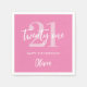 A simple modern 21st birthday napkins featuring elegant calligraphy script typography and minimalist design in pink and white colour.