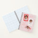Featuring three customisable photo frames with scalloped edges, handwritten Merry Christmas and Fa La La lettering, and a soft blush pink background with playful holiday doodles and tiny hearts — this notebook is as cosy as the season itself.