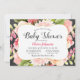 Modern Pink Floral Border Baby Girl Shower Invitation