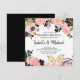 Large blush pink roses combine with small black flowers and gold leaves to create a modern floral design. The back of the wedding brunch invitation is black to add to the drama. You can change the background to any colour. The newlywed names are written in a carefree script font that gives it a Bohemian appeal. The remainder of the text is a classic serif. Easy-to-customise template.