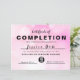 Modern pink feather Certificate of completion design. If you want to change the font style, colour or text placement, simply click the "Customise Further" button. If you need my design on any other size or need help with your design, please don`t hesitate to contact me! More matching items in my store @Andreea Eremia Design