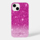 Modern Pink Glitter Girly Monogrammed iPhone 14 Case
