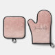 Modern Pink Glitter Sparkles Personalised Name Oven Mitt & Pot Holder Set