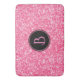 Modern Pink Glitter Texture With Monogram Bath Mat