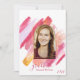 Simple and elegant, these modern pink and gold painted brush design behind an arched photo with gold borders is the perfect way for any graduate to invite friends and family to the party!