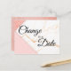 Modern Pink Gold Glitter Marble Change the Date Postcard