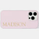 Create your own personalised iPhone Case with custom monogram name in minimalist typography in modern pink and gold colour.