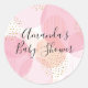 Fun pink & gold dots Baby Shower Favour sticker for a girl baby shower. Matching items available in our shop.