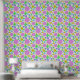 Modern, pink, green, blue and yellow funky dotty wallpaper