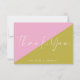 Modern Pink Green Colour Block Custom Wedding Thank You Card