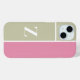 Custom colour block Pink Green Feminine Girly Trendy Monogram Iphone 15 case. Personalise this stylish pink and Green Iphone 15 case, Perfect gift or accessory for any occassion!