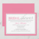 Bridal Shower invitations with a modern pink and grey typography design and a pink and grey border. The backside is a solid pink. Modern Pink & Grey Bridal Shower Invitations.