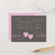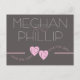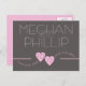 Pink Hearts over grey modern save the date postcard that you can customise with your own names, date and text.