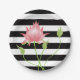 Modern Pink Lotus Floral Stripes Paper Plate