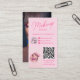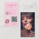A Modern makeup logo Qr code 2 photos featuring a cool modern brush script font with 2 photos, qr code for price list and infos, logo and social media on pastel pink with hot neon pink