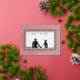 This beautiful save the date foil postcard design features a soft dusty pink marbled background with your photo in the centre. The foil text appears on top of your photo, with a floating white text box surrounded by two foil frames. Created by Simply Farmhouse Press.