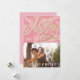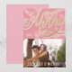 Modern Pink Merry Script Faux Gold Holiday Photo Card