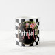 Modern Pink Monogram | Black & White Checkerboard Coffee Mug