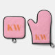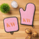 Modern Pink Orange Monogram Initials Personalised Oven Mitt & Pot Holder Set