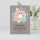 Modern Pink Owl Floral & Grid Baby Shower Thank You Card