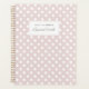 Custom-designed planner notebook featuring white polka dots on dusty pink colour with personalised name..