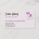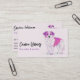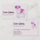 A business card with a modern pink and purple tones drawing of a cute dog. Perfect for a dog walker service or pet sitter.