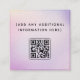 This modern pink purple gradient social media QR code square business card features a bold gradient design with a unique custom QR code for easy scanning. Perfect for social media managers, influencers, and modern marketing pros, it blends geometric style with a sleek, trendy look. Great for networking, linking to your website or platforms, this social media business card offers a standout, modern purple square format.