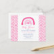 Modern pink rainbow baby shower invitation postcard. Matching accessories and party range items available. Original art from artists own illustrations. Please use the message me button below for help with further customisation and special requests. © Zoe Chapman Design