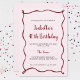 This cute, modern pink and red birthday invitation is perfect whatever the milestone age. With a light pink background background, the invitation features a red, hand drawn border and the red and black typography can be easily customised with your party details.