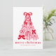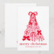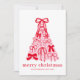 Modern Merry Pink & Red Bow Tree Flat Holiday Card – Personalised Festive Fun.