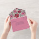 Modern red and pink floral pattern on a beige background with delicate foliage elements. This invitation is a great way to send all your details in one easy to use format. All you need to do is change the text to your personal requirements, then you guest can detach the rsvp information and send back. So easy and convenient.
