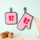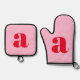 Modern Pink Red Monogram Initial Personalised Oven Mitt & Pot Holder Set