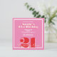 Modern Pink Red Retro 21st Birthday Square Invitation