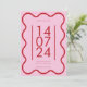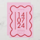 Minimalist pink and red wavy border save the date invite. This modern wedding save the date invitation features a wedding website QR code.