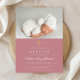 Modern Pink Religious Cross Girl Photo Baptism Invitation